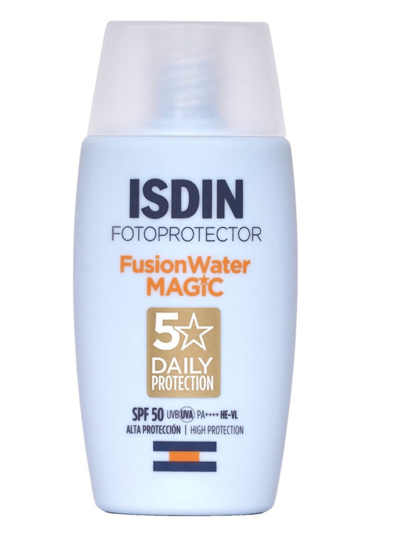 ضدآفتاب فیوژن واتر مجیک ایزدین یکی از انواع ضد آفتاب های برند ایزدین است که بافتی فوق العاده سبک و زود جذب روی پوست داشته و برای استفاده روزانه ایده آل است. این ضد آفتاب علاوه بر محافظت بالا از پوست در برابر اشعه های مضر نور خورشید با SPF50، پوست را رطوبت رسانی کرده، چربی آن را کنترل میکند و دارای خاصیت آنتی اکسیدانی است. ضد افتاب ایزدین مجیک برای پوستهای چرب ایده آل است، فاقد روغنهای معدنی است، جلوهای کاملا مات روی پوست دارد و احساس چربی و سنگینی ایجاد نمیکند.